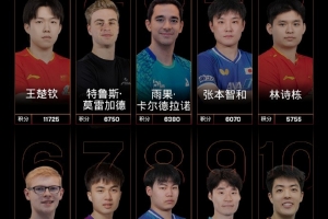 男单世界前10:1王楚钦、2莫雷加德、3雨果、4张本智和、5林诗栋、6-小勒布伦、7-林昀儒、8-松岛辉空、9张禹珍、10邱党。