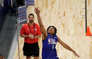 钱德勒(183cm,控卫)在22年第38顺位被马刺选中,随后交易至灰熊。本赛季,在76人下属发展联盟球队特拉华蓝衫军场均得到15.8分3.1篮板10.1助攻1.9抢断;在和爵士签下第一份10天短合同后,他场均能得到14.2分3.2篮板6.8助攻。
