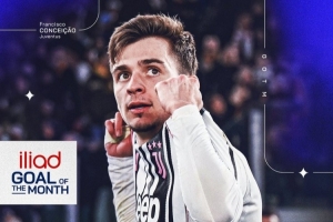 意甲第27轮比赛,尤文客场3-3战平罗马,小孔塞桑第47分钟禁区边缘凌空世界波破门,意甲官方社媒晒出海报,宣布这记凌空抽射当选意甲3月最佳进球。